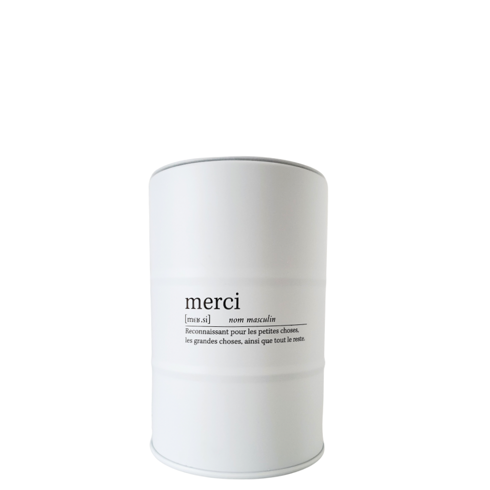 Deze supergave blikken met geurkaars hebben maar liefst een brand duur van 55 uur! De heerlijke maar toch subtiele geur geeft je huis een warm en cozy gevoel. De tekst staat aan de ene kant in het engels en de andere kant in het Frans.