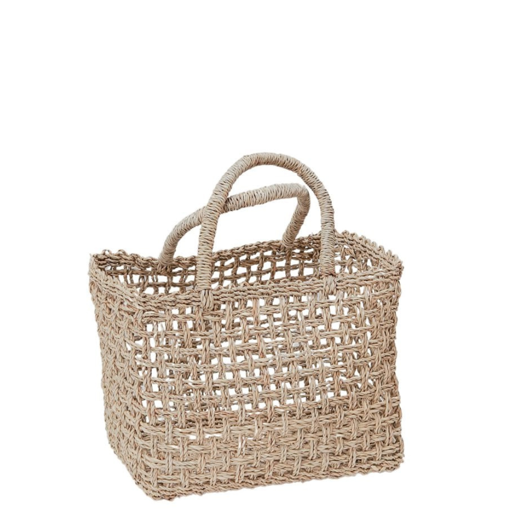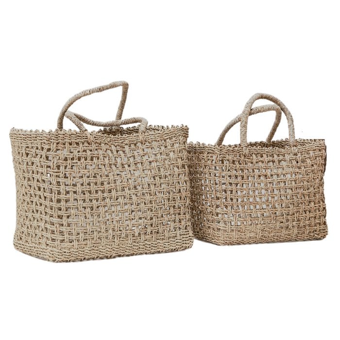 De praktische, ruime tas van kruisgeknoopt zeegras is verkrijgbaar in twee maten, zodat er zeker de juiste variant voor jouw wensen tussen zit. De tas kan ook gebruikt worden als het regent, omdat het robuuste materiaal niet erg is om nat te worden.