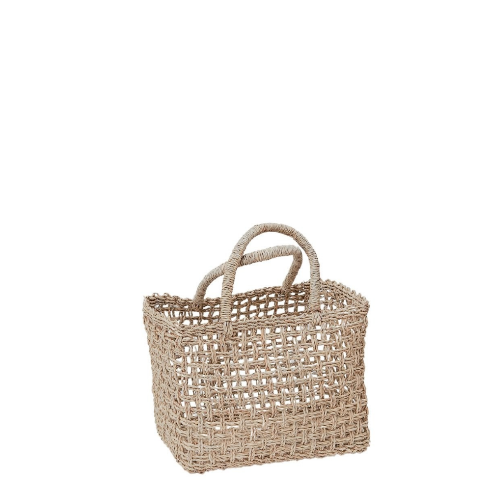 De praktische, ruime tas van kruisgeknoopt zeegras is verkrijgbaar in twee maten, zodat er zeker de juiste variant voor jouw wensen tussen zit. De tas kan ook gebruikt worden als het regent, omdat het robuuste materiaal niet erg is om nat te worden.
