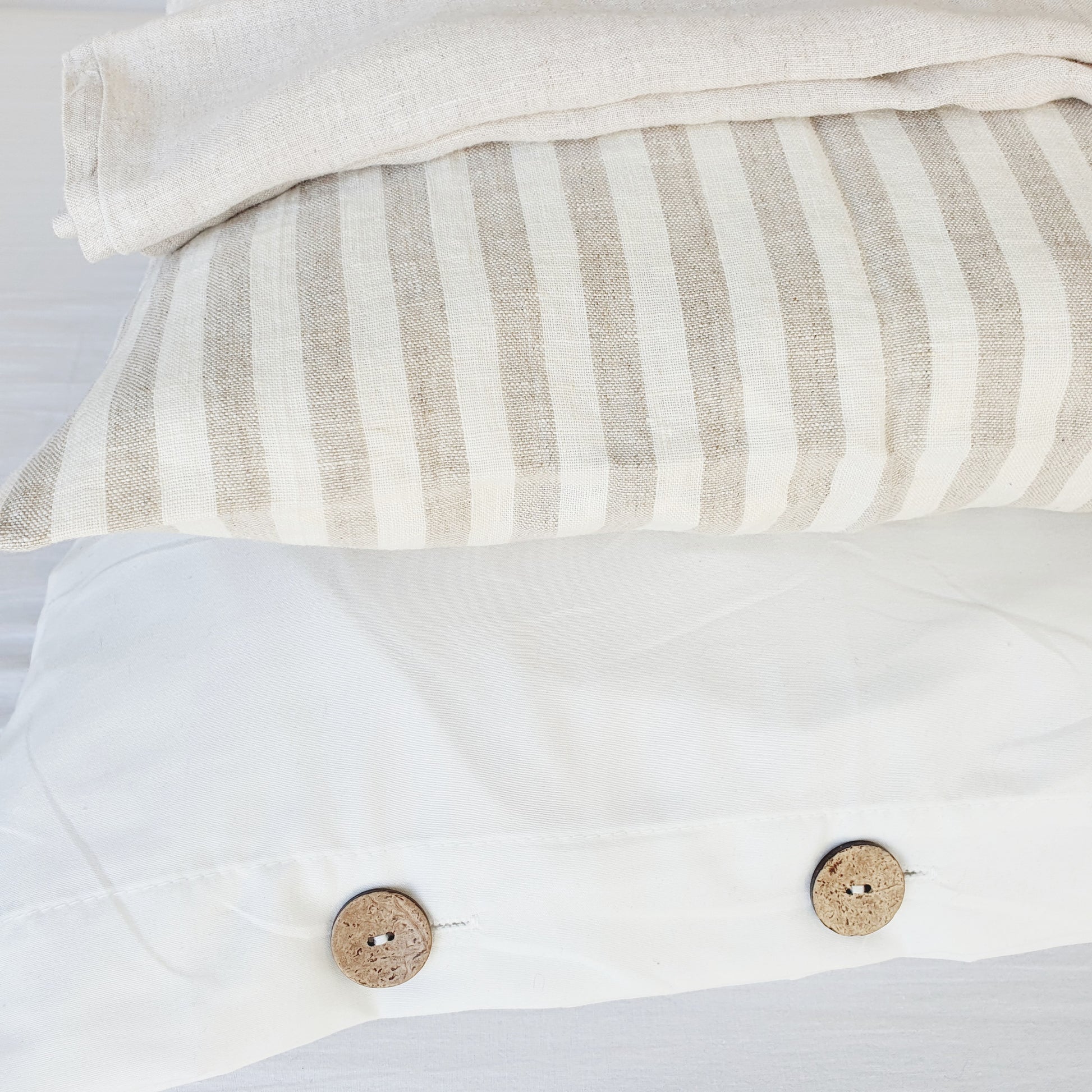 Gebroken wit gestreept linnen kussenhoes
