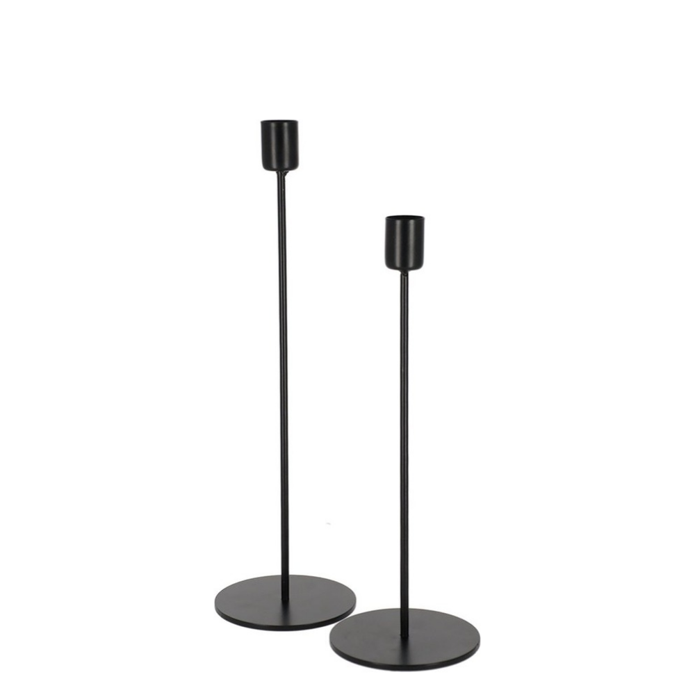 Verrijk je interieur met deze stijlvolle kandelaren! Ze zijn gemaakt van stevig metaal en geschikt voor dinerkaarsen. De set bestaat uit een kandelaar van 25 cm hoog en een kandelaar van 30 cm hoog. Door het hoogteverschil krijgt de set een speelse look.