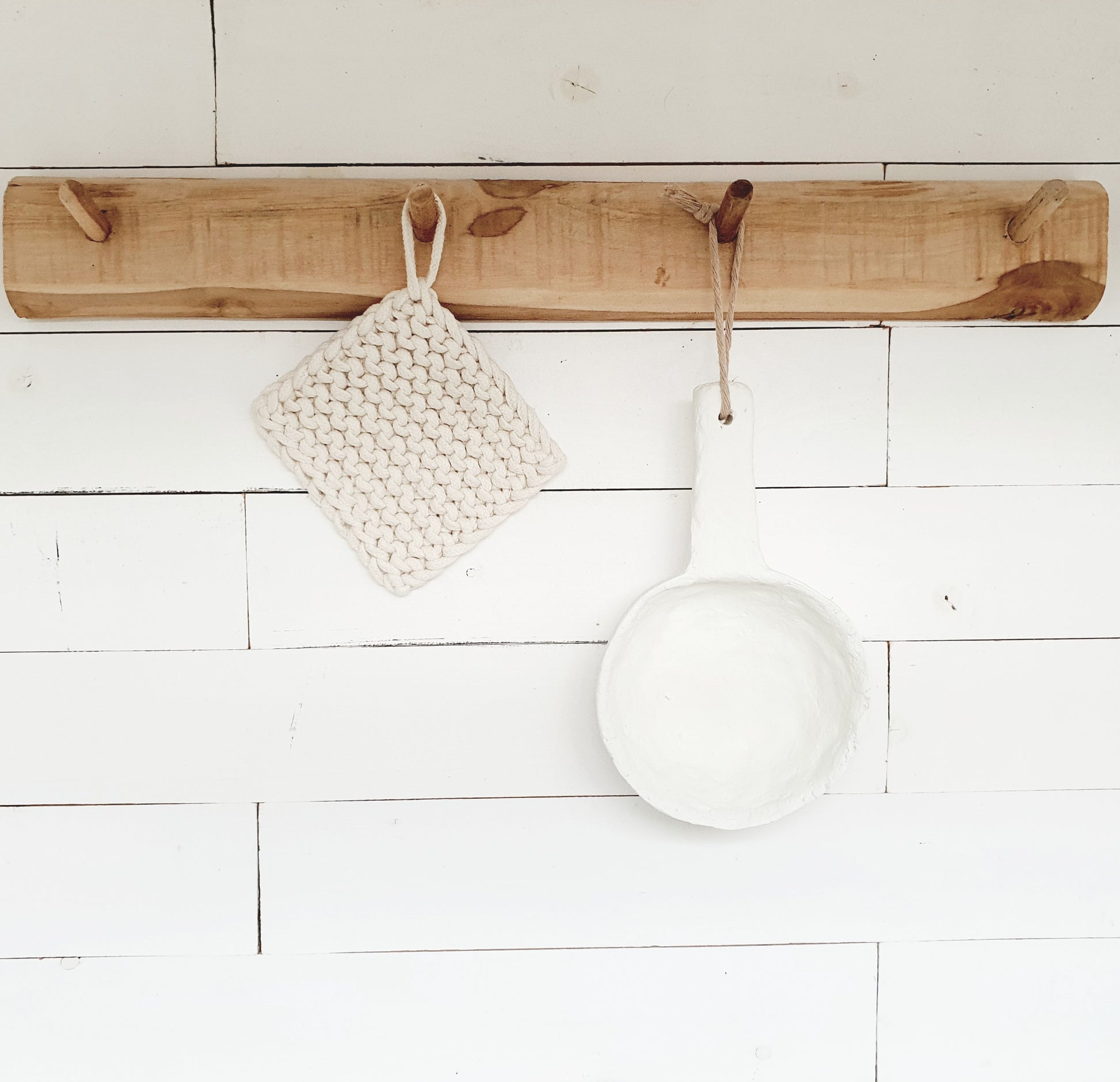 Leuke kapstok van hout voor bv je keukendoeken. De kapstokken zijn handgemaakt van natuurlijk hout en deze kunnen daarom licht afwijken van de getoonde foto's.