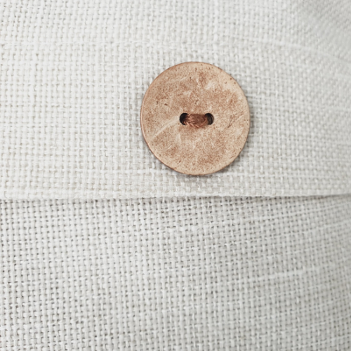 Mooi canvasachtige kussenhoes met houten knopen. De plaats van de knopen zit de ritssluiting. De kussenhoes kan worden gewassen. De hoes heeft een verborgen ritssluiting.