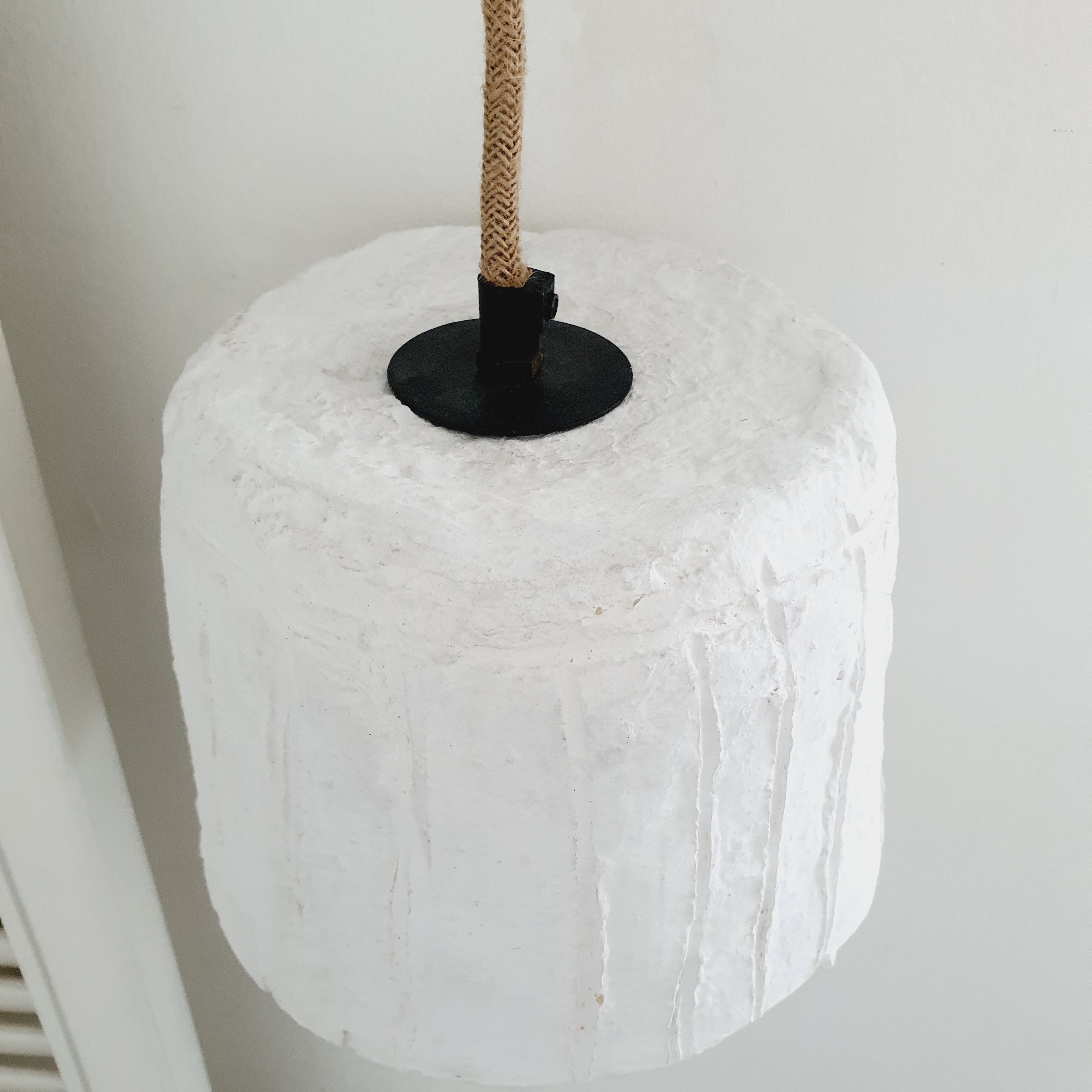 Hele gave papiermache lamp. De lamp is door ons met de hand gemaakt. De lamp is om aan het plafond te hangen en heeft een zwarte rozet. Uiteraard ook te vervangen door een stekker zodat je hem op een andere plek dan het plafond kan hangen. (Stekker wordt niet meegeleverd)
