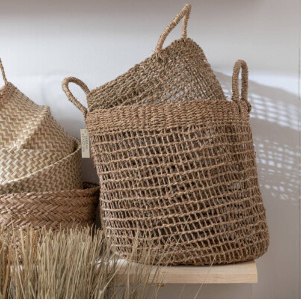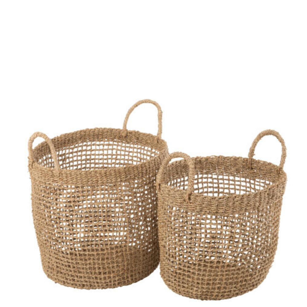 Mooie grote set opbergmanden voor bv plaids en kussens. De manden zijn handgemaakt van zeegras.
