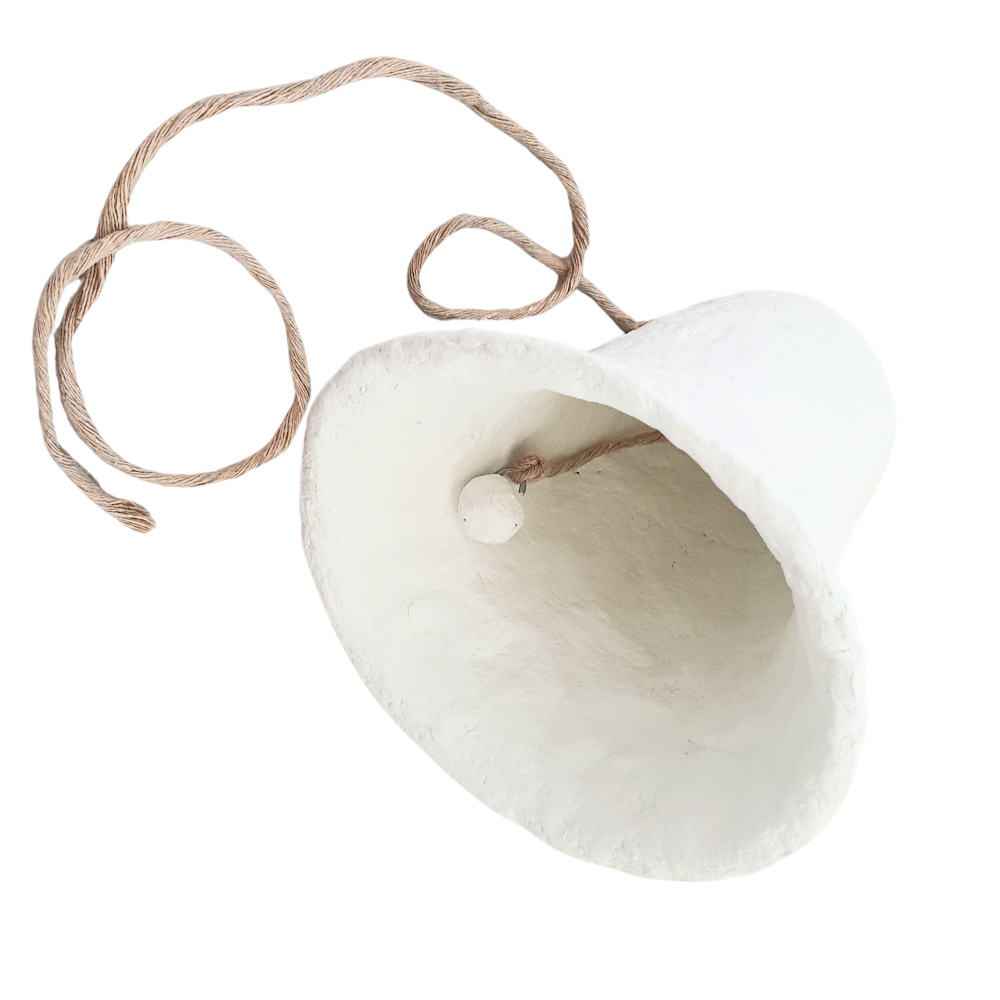 Hoe gaaf is deze papiermache kerstklok met klepel. De klok is met de hand gemaakt in ons atelier. Doordat het een handgemaakt product is kan de klok ligt afwijken van de getoonde foto's.