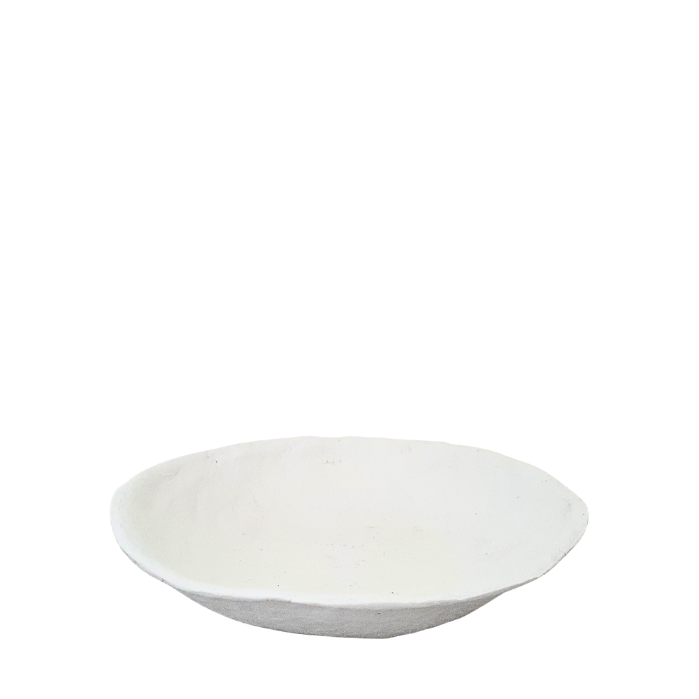 Een toffe ronde schaal gemaakt in ons eigen atelier. Gebruik de schaal voor mooie decoratie. De schaal kan niet tegen water! Het is de middelste schaal op de foto van 3 schalen.