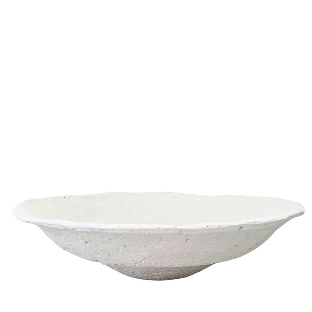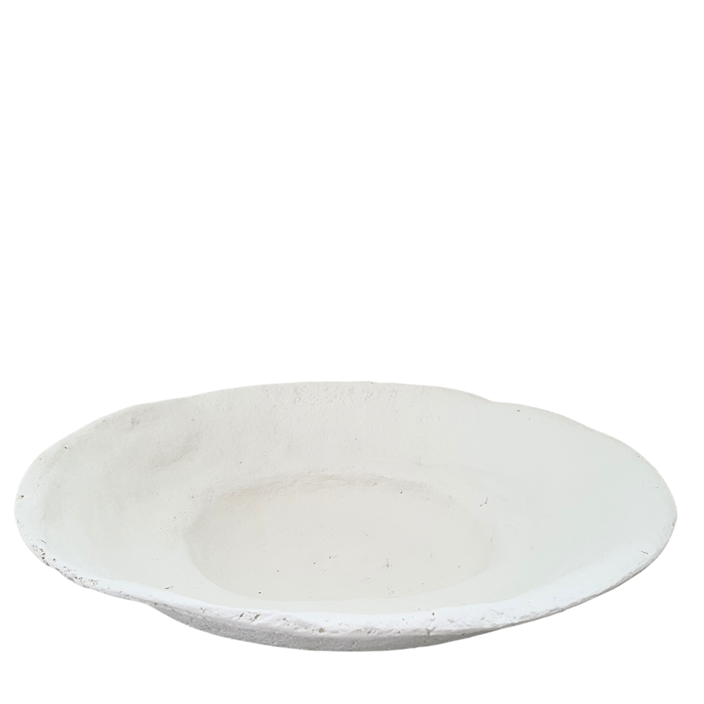 Hele grote papiermache schaal met een diameter van maar liefst 38 cm. Leg je mooiste spullen erin of brand een mooi kaars in zand erin. Doordat de schaal handgemaakt is is deze uniek.