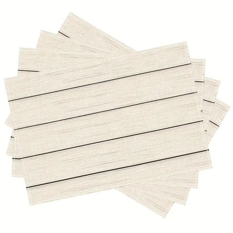 4 sterke stoffen placemats in een canvaslook met strepen. De placemats kunnen gewassen worden op 30 graden, niet centrifugeren!